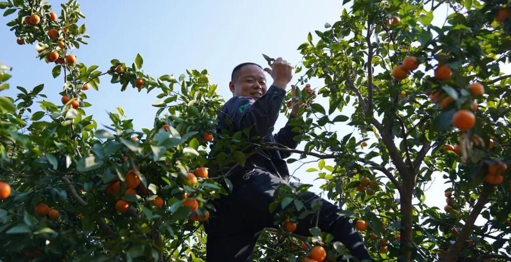 在高登家人的齊心協(xié)力下,果籃迅速被橘子填滿。10000斤橘子井然有序擺放在高登家人面前。