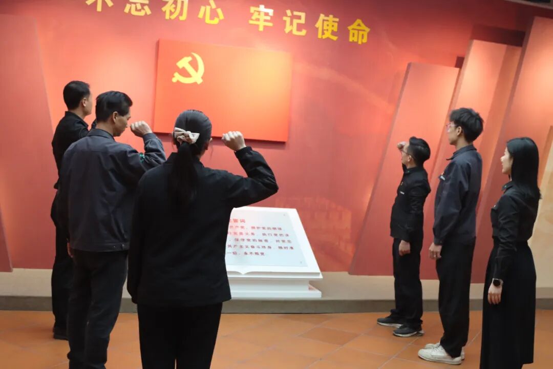 鐵軍鐵心跟黨走,戰(zhàn)旗永隨黨旗飄。站在莊嚴(yán)肅穆的黨旗面前,大家紛紛舉起右手,重溫入黨誓詞。